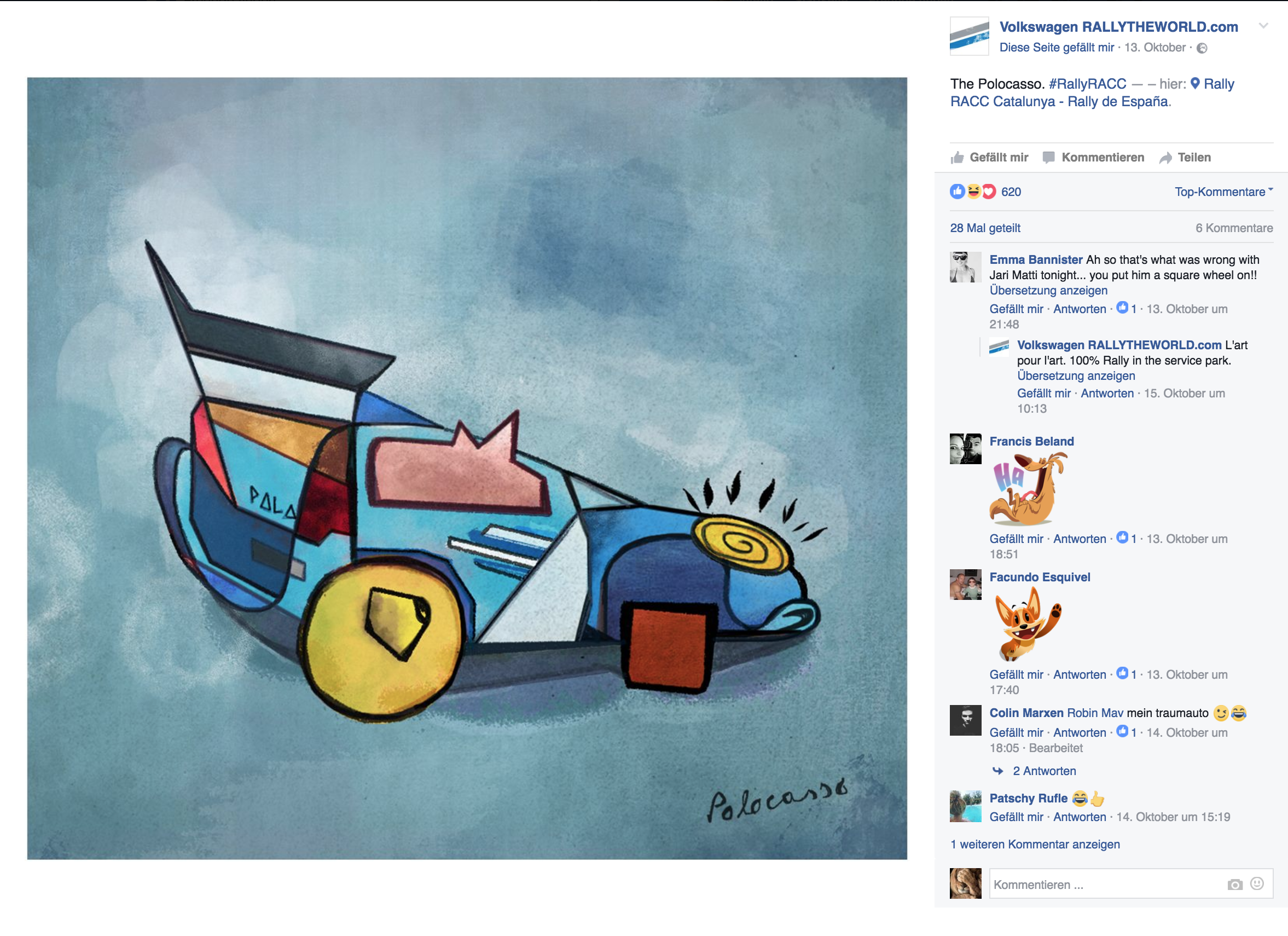 Facebook Post zu Beginn der Spanien-Rallye für Volkswagen Motorsport.